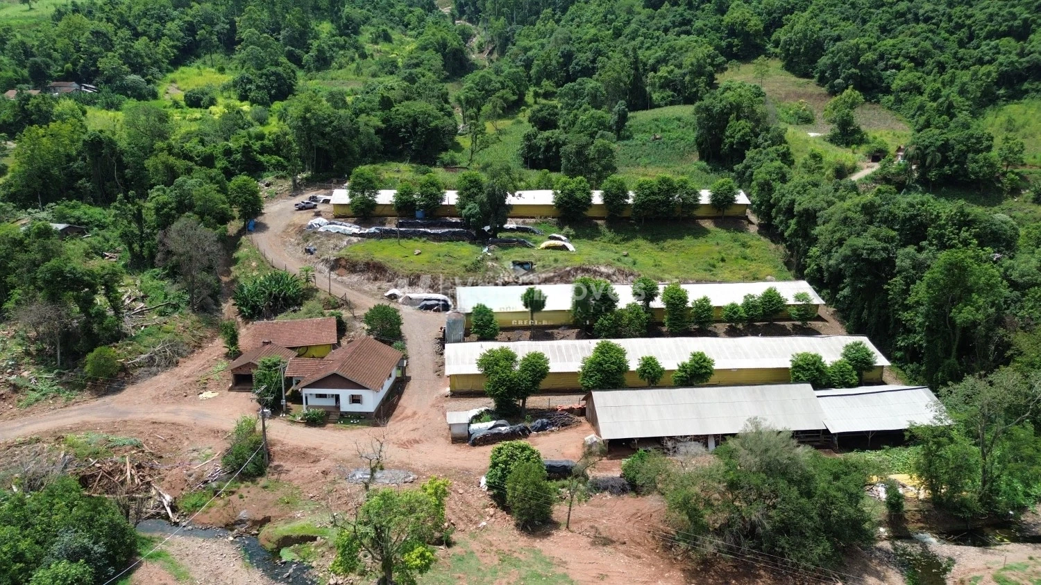 Descrição › Oportunidade! Área de terras com 3 aviários equipados e automatizados, prontos e completos pra receber pintinhos. Propriedade com 6ha. Uma casa contendo 4 dormitórios, sala, cozinha, banheiro, lavanderia, garagem para dois carros... Mais dois galpões auxiliares. Além de dar acesso a um lindo arroio.