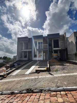 Descrição › Sobrado 91m², sala, cozinha, lavabo, duas suítes, quiosque com lavanderia e churrasqueira, pátio fundos 25m2 com murro de 2m de altura, piso em porcelanato, acabamento em massa corrida nas paredes.
